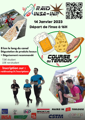 Bonjour à tous, on vous annonce l'ouverture officielle des inscriptions pour la Course du Terroir ! On vous attend sur le site du Raid INSA-INP : https://raidinsainp.fr/inscriptions pour vous inscrire par équipe de 2 personnes. 🏃♂️🏃♀️ 📆 On vous rappelle que la Course du Terroir sera organisée le Samedi 14 janvier. 😋 Vous pourrez profiter d’un parcours de 8km le long du canal tout en savourant de…