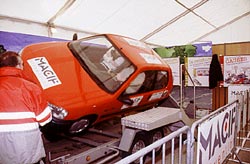 Concrètement, les automobilistes et leur famille prennent place à lintérieur du véhicule et attachent leur ceinture. Lors de la mise en marche du système, les occupants prennent conscience de limportance du respect de cette règle de sécurité élémentaire, à lavant comme à larrière. En effet, au moment de la rotation, les passagers se retrouvent " la tête en bas ", maintenus par leur ceinture de sécurité.