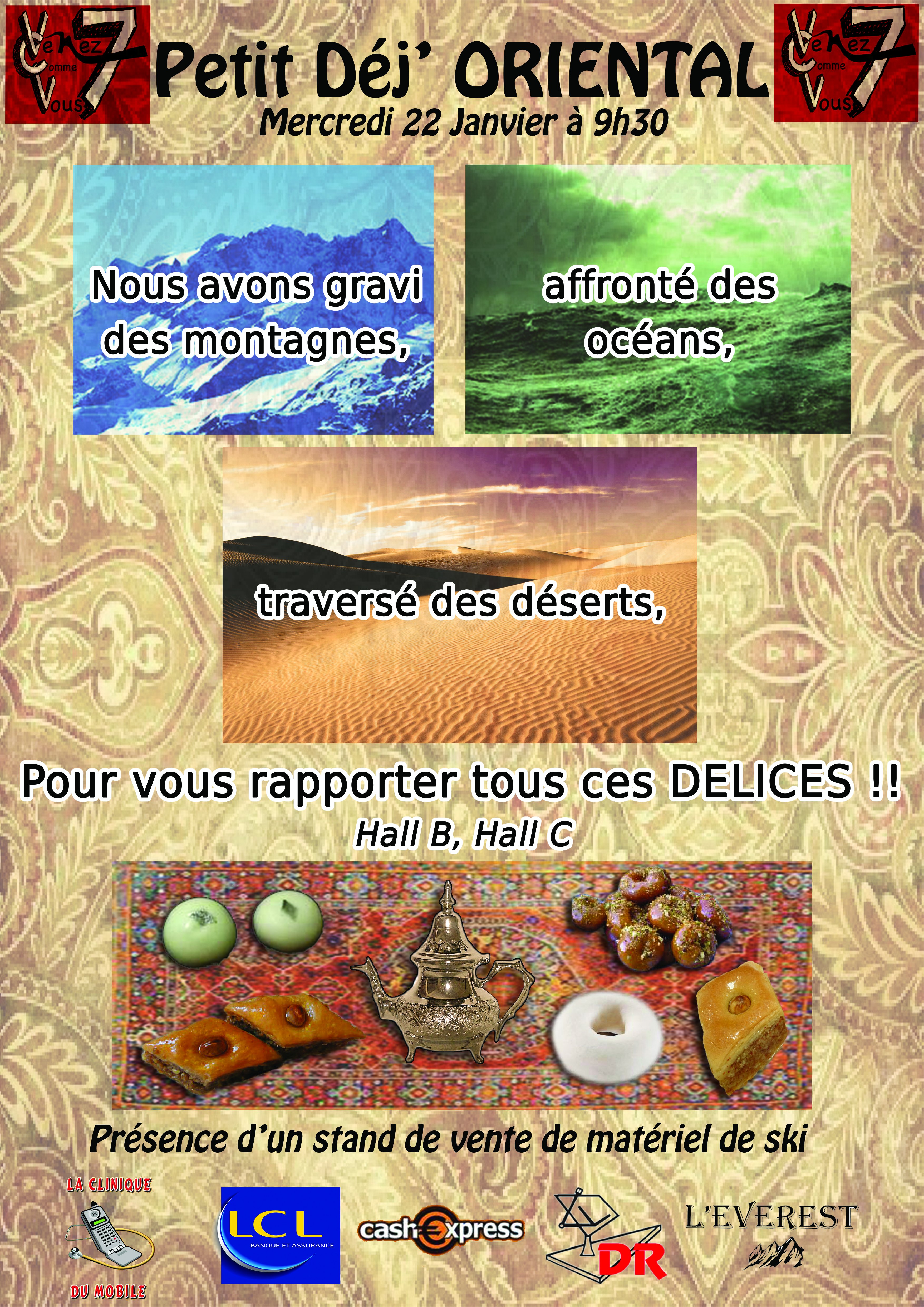 Viens savourer le Mercredi 22 Janvier les délices d'un petit déjeuner oriental avec VCV7